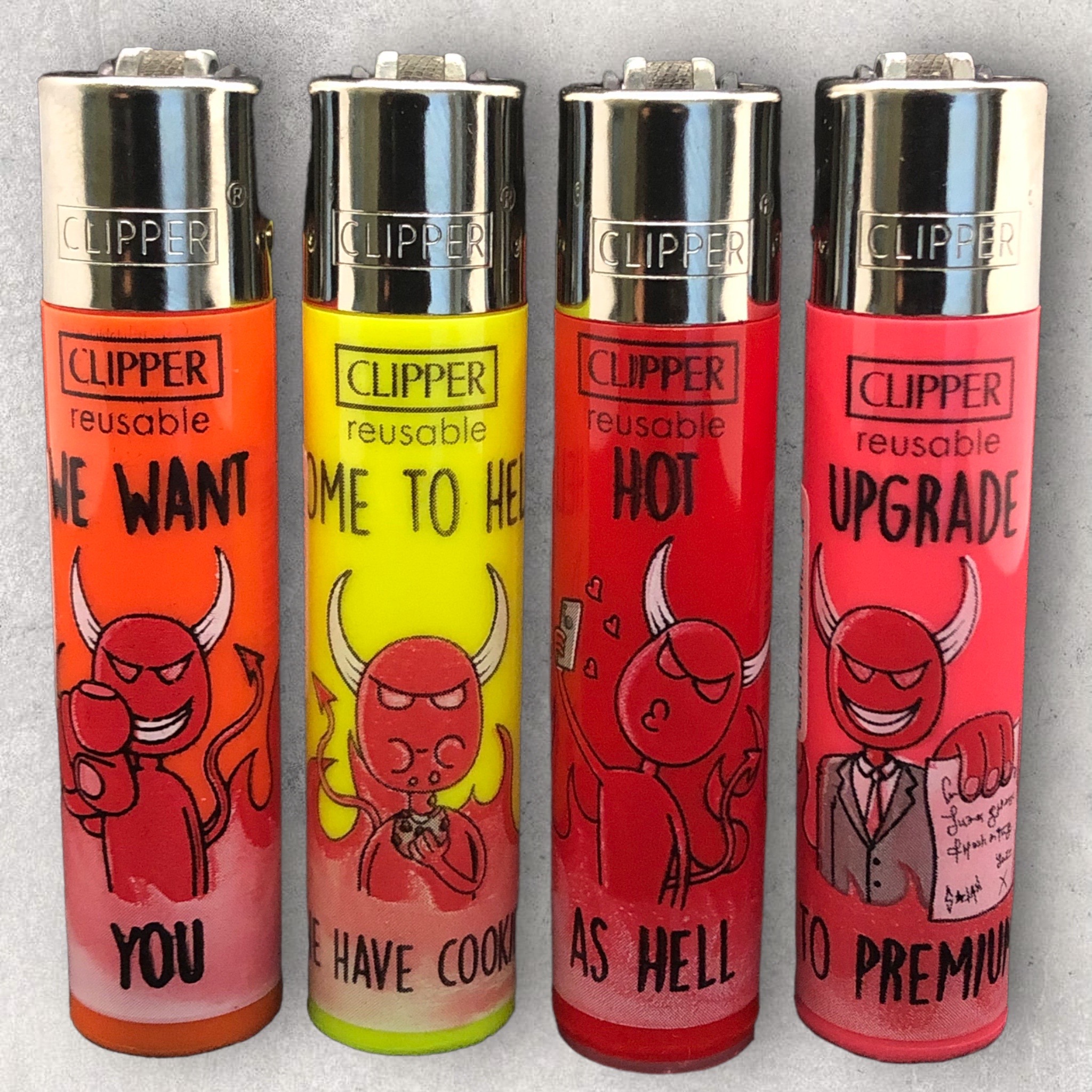 - Lieferumfang: 4 x Clipper Feuerzeuge
